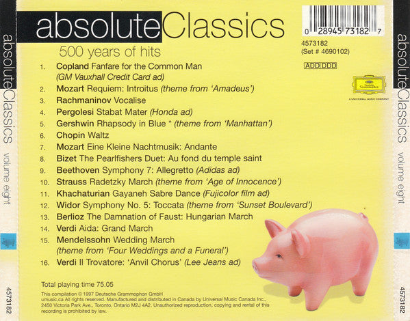 Experience the timeless voice of Various in the iconic album, Absolute Classics Volume Eight. Released in 2003, this original Deutsche Grammophon release blends Classical music, featuring timeless performances that are a must-have for any music lover and collector.