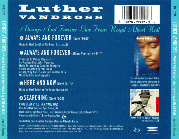• Authenticity: LV Records, Epic Always And Forever Live From Royal Albert Hall, released in 1994.