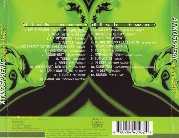 Experience the timeless voice of Various in the iconic album, Atmospheric Drum & Bass - Volume 4. Released in 1998, this original Never Records release blends Electronic music, featuring timeless performances that are a must-have for any music lover and collector.