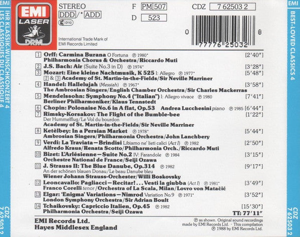 • Authenticity: Angel Records, EMI Best-Loved Classics 4, released in 1988.