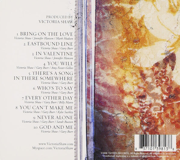 Experience the timeless voice of Victoria Shaw in the iconic album, Bring On The Love. Released in 2008, this original Taffeta Records release blends Folk, World, & Country music, featuring timeless performances that are a must-have for any music lover and collector.