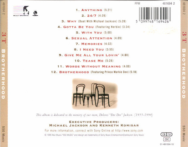 Experience the timeless voice of 3T in the iconic album, Brotherhood. Released in 1996, this original 550 Music, MJJ Productions release blends Hip Hop, Funk / Soul, Pop music, featuring timeless performances that are a must-have for any music lover and collector.