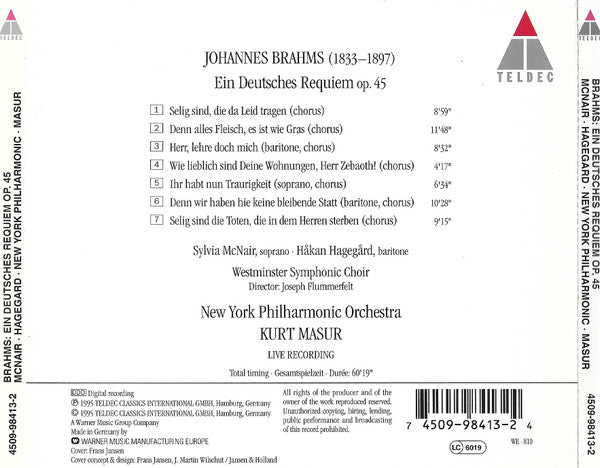 - Artist(s): Johannes Brahms, New York Philharmonic, Kurt Masur, Sylvia McNair, Håkan Hagegård, Westminster Symphonic Choir