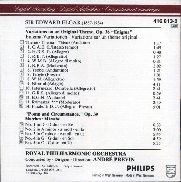 Elgar: "Enigma" Variations; "Pomp & Circumstance" Marches Nos. 1-5 by Sir Edward Elgar, André Previn, Royal Philharmonic Orchestra (CD)