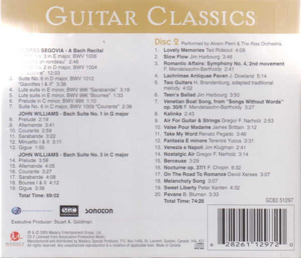 Experience the timeless voice of Andrés Segovia, John Williams (7) in the iconic album, Guitar Classics. Released in 2005, this original Madacy release blends Classical music, featuring timeless performances that are a must-have for any music lover and collector.