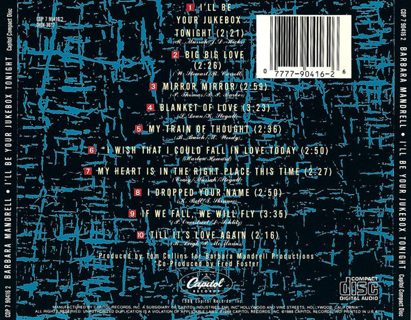 Experience the timeless voice of Barbara Mandrell in the iconic album, I'll Be Your Jukebox Tonight. Released in 1988, this original Capitol Records release blends Folk, World, & Country music, featuring timeless performances that are a must-have for any music lover and collector.