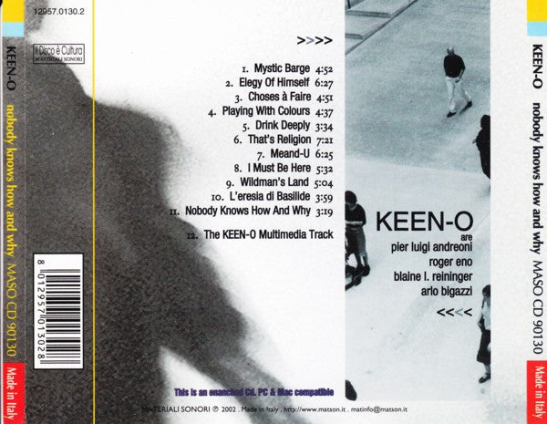 Experience the timeless voice of Keen-O in the iconic album, Nobody Knows How And Why. Released in 2002, this original Materiali Sonori release blends Electronic, Jazz, Pop music, featuring timeless performances that are a must-have for any music lover and collector.