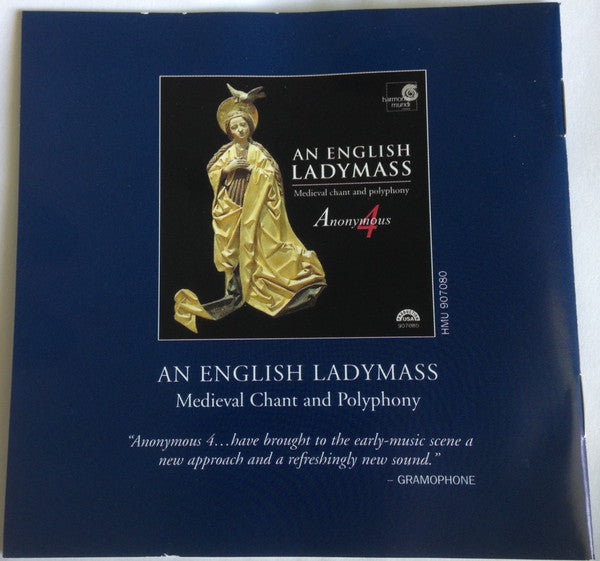 Anonymous 4 was an American female a cappella vocal quartet that specialized in medieval music. Formed in 1986, the group took their name from an anonymous 13th-century English music manuscript. Consisting of Marsha Genensky, Susan Hellauer, Ruth Cunningham, and Jacqueline Horner-Kwiatek, Anonymous 4 gained international acclaim for their pure, ethereal vocal blend and impeccable musicianship. The quartet's repertoire focused primarily on medieval chant, polyphony, and early polyphonic music from the 12th to 15th centuries. They performed in a variety of venues, from concert halls to cathedrals, and released numerous recordings on the Harmonia Mundi label. Throughout their career, Anonymous 4 received critical acclaim and won several awards for their recordings, including a Grammy nomination. They disbanded in 2016 after three decades of performing together, leaving behind a legacy of exquisite interpretations of medieval music that continue to inspire and captivate audiences worldwide.