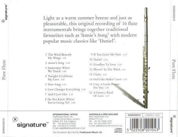 Experience the timeless voice of Unknown Artist in the iconic album, Pure Flute. Released in 2002, this original Signature (6) release blends Pop music, featuring timeless performances that are a must-have for any music lover and collector.