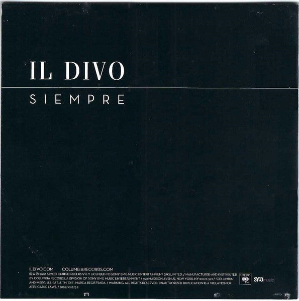Experience the timeless voice of Il Divo in the iconic album, Siempre. Released in 2006, this original Syco Music, Columbia release blends Pop, Classical music, featuring timeless performances that are a must-have for any music lover and collector.