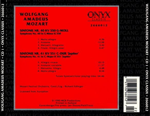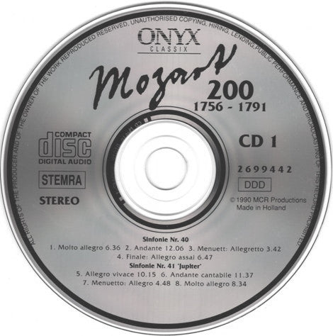- Authenticity: ONYX Classix Sinfonie Nr. 40 / Sinfonie Nr. 41 'Jupiter', released in 1990.
