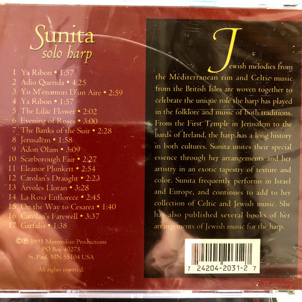 Experience the timeless voice of Sunita Staneslow in the iconic album, Solo Harp. Released in 1991, this original Maxemilian release blends Folk, World, & Country music, featuring timeless performances that are a must-have for any music lover and collector.