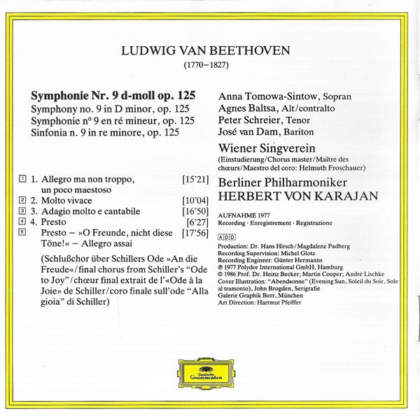 - Artist(s): Ludwig van Beethoven, Anna Tomowa-Sintow, Agnes Baltsa, Peter Schreier, José van Dam, Wiener Singverein, Berliner Philharmoniker, Herbert von Karajan