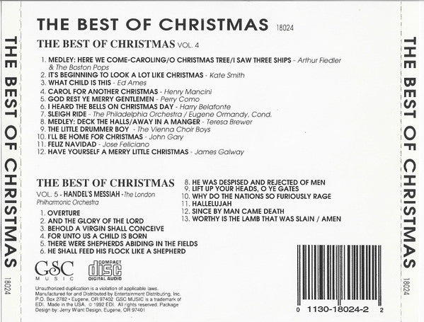 Experience the timeless voice of Various in the iconic album, The Best Of Christmas (Vol. 4-5). Released in 1992, this original GSC Music release blends Jazz, Pop music, featuring timeless performances that are a must-have for any music lover and collector.