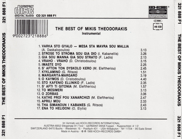- Authenticity: Koch Records International The Best Of Mikis Theodorakis, released in 1988.