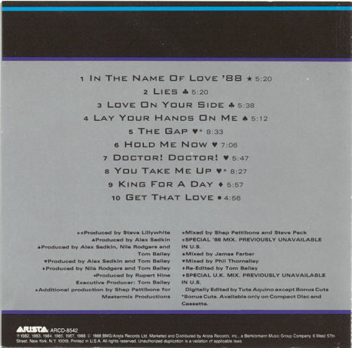 - Authenticity: Arista The Best Of Thompson Twins / Greatest Mixes, released in 1988.
